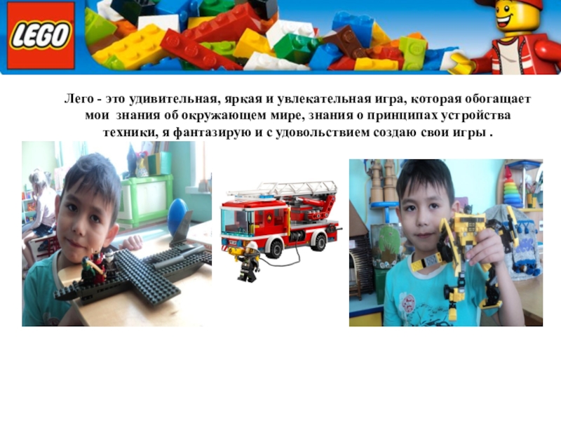 Слайд 15Лего - это удивительная, яркая и увлекательная игра, которая обогащает мои