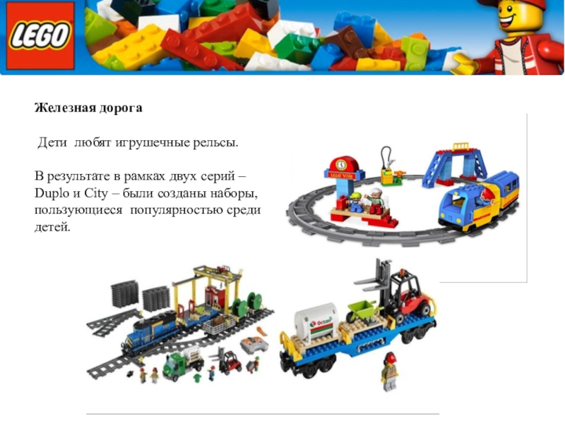 серий – Duplo и City – были созданы наборы, пользующиеся популярностью среди детей.