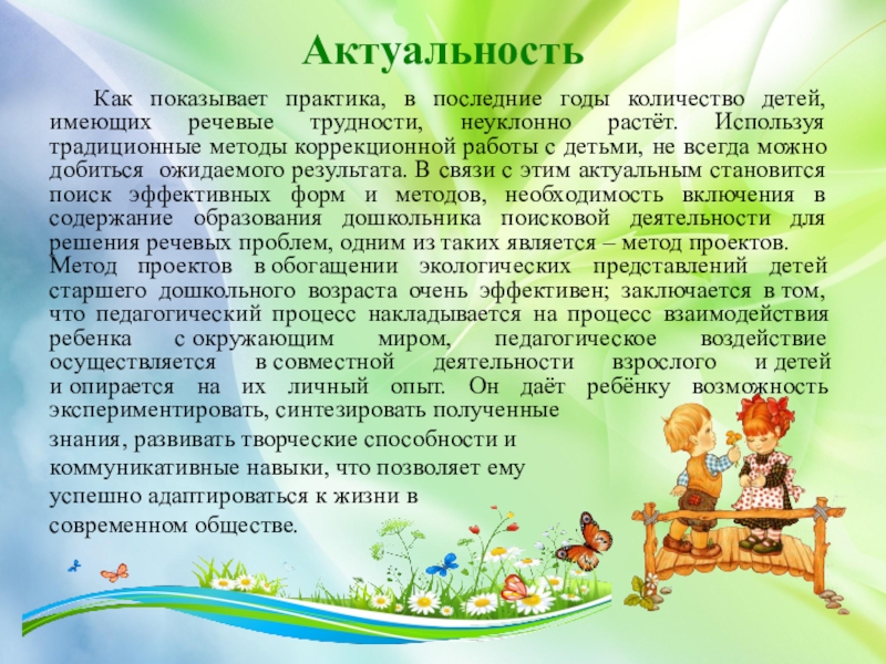 «Использование проектного метода в работе с детьми, имеющими речевые нарушения, по экологическому воспитанию»