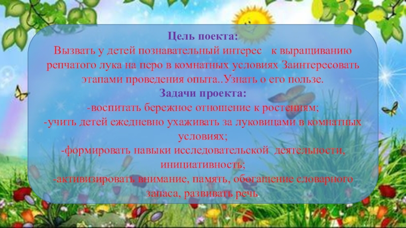Вызвать у детей познавательный интерес к выращиванию репчатого лука