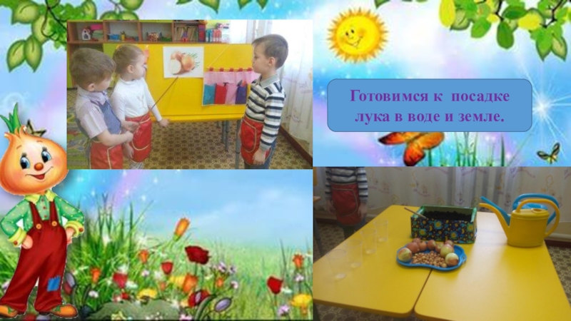Слайд 11Готовимся к посадке лука в воде и земле.