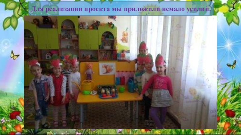 Слайд 17Для реализации проекта мы приложили немало усилий.