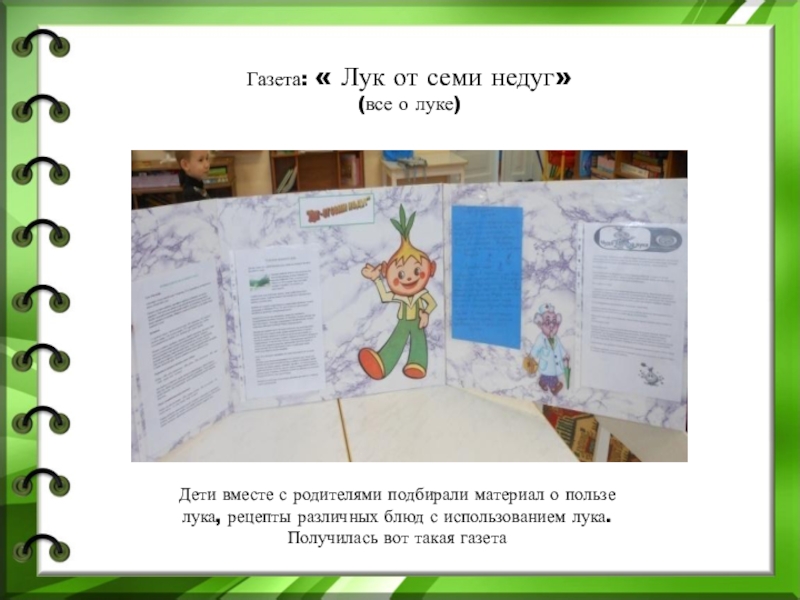 родителями подбирали материал о пользе лука, рецепты различных блюд с использованием лука.