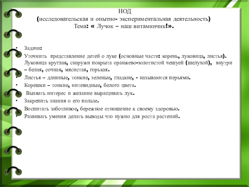 Введение новой лексики: луковица, чешуя (шелуха), корешки, перья, всходы, витамины, фитонциды, выращиваем.