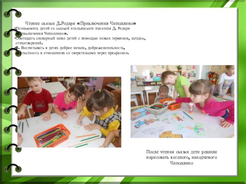 Слайд 24После чтения сказки дети решили нарисовать веселого, находчивого Чиполлино
