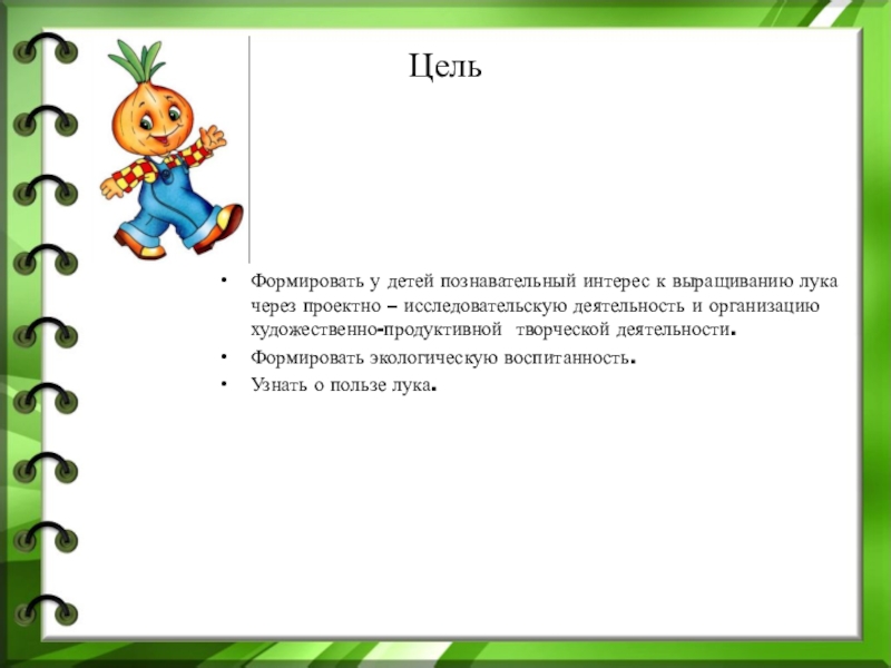 Формировать у детей познавательный интерес к выращиванию лука через проектно