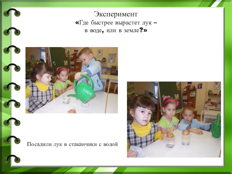 Дети получат знания и представления о росте зеленого лука в комнатных условиях как в стакане с водой, так и в контейнере с землей