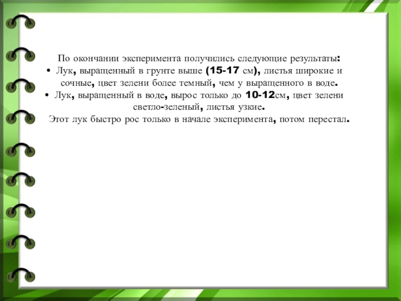 Этот лук быстро рос только в начале эксперимента, потом перестал.