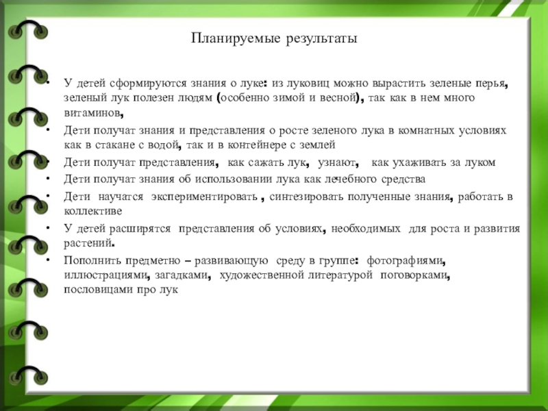 Дети получат представления, как сажать лук, узнают, как ухаживать за луком