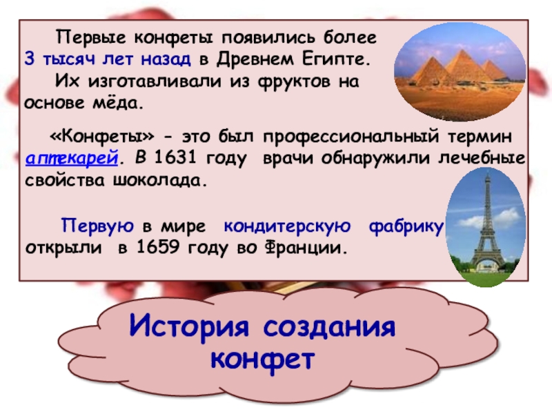 «Конфеты» - это был профессиональный термин аптекарей. В 1631 году врачи обнаружили лечебные свойства шоколада.