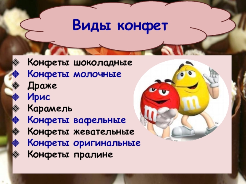 Конфеты – не только лакомство, но и очень питательный и калорийный продукт. Они незаменимы там, где нужно быстро восстановить силы и запасы энергии.