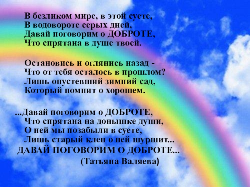 ДАВАЙ ПОГОВОРИМ О ДОБРОТЕ...