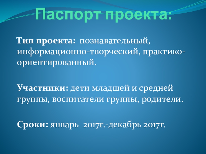 Слайд 8Паспорт проекта: