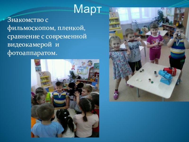 Знакомство с фильмоскопом, пленкой, сравнение с современной видеокамерой и фотоаппаратом.