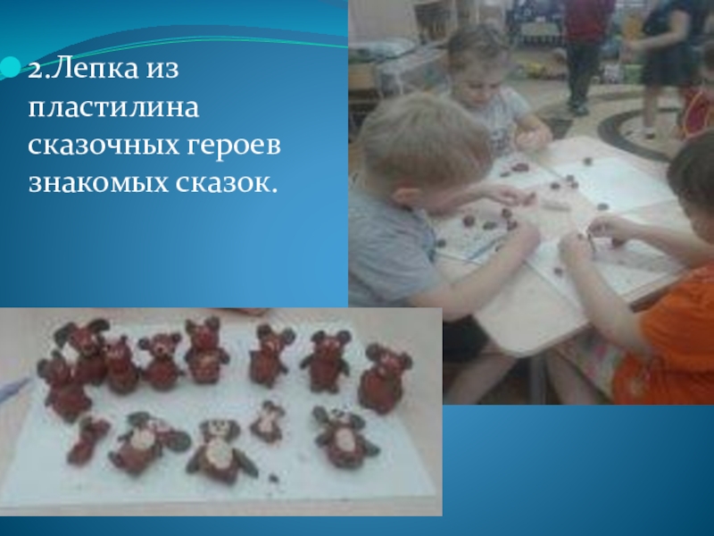2.Лепка из пластилина сказочных героев знакомых сказок.