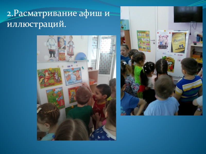 Слайд 172.Расматривание афиш и иллюстраций.