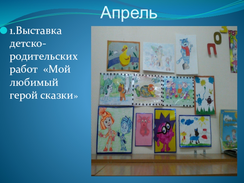 1.Выставка детско-родительских работ «Мой любимый герой сказки»