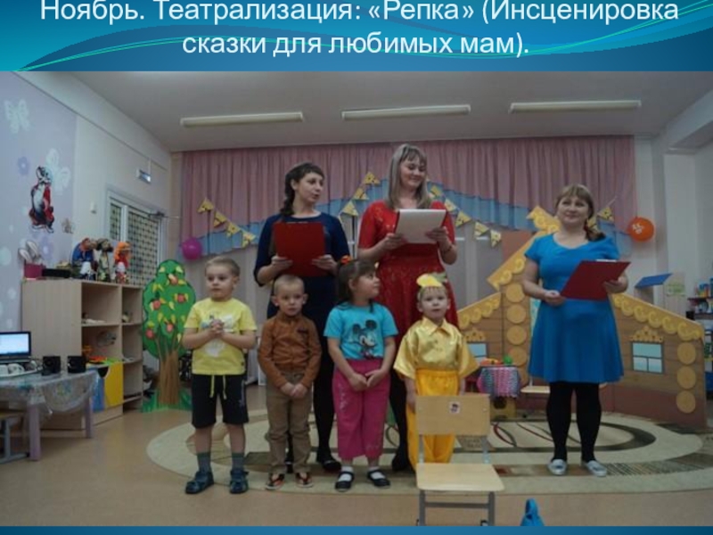 Слайд 31Ноябрь. Театрализация: «Репка» (Инсценировка сказки для любимых мам).