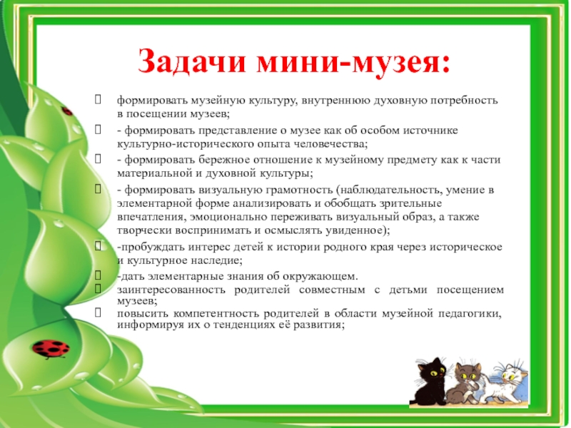 повысить компетентность родителей в области музейной педагогики, информируя их о тенденциях её развития;