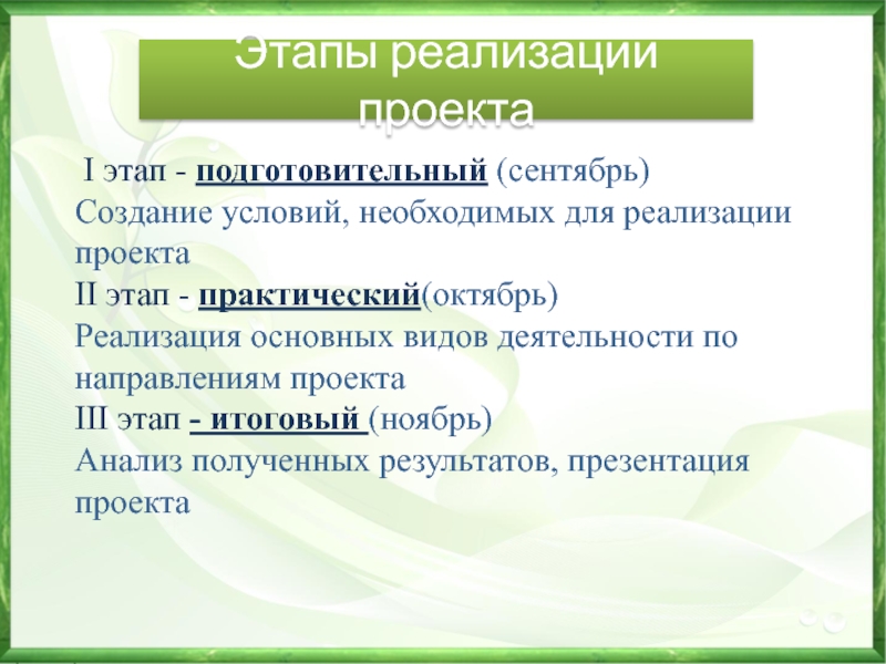 Сроки реализации проекта: (сентябрь - ноябрь 2018 г.)