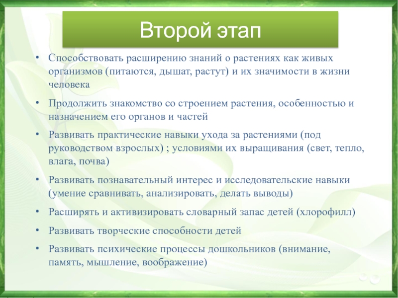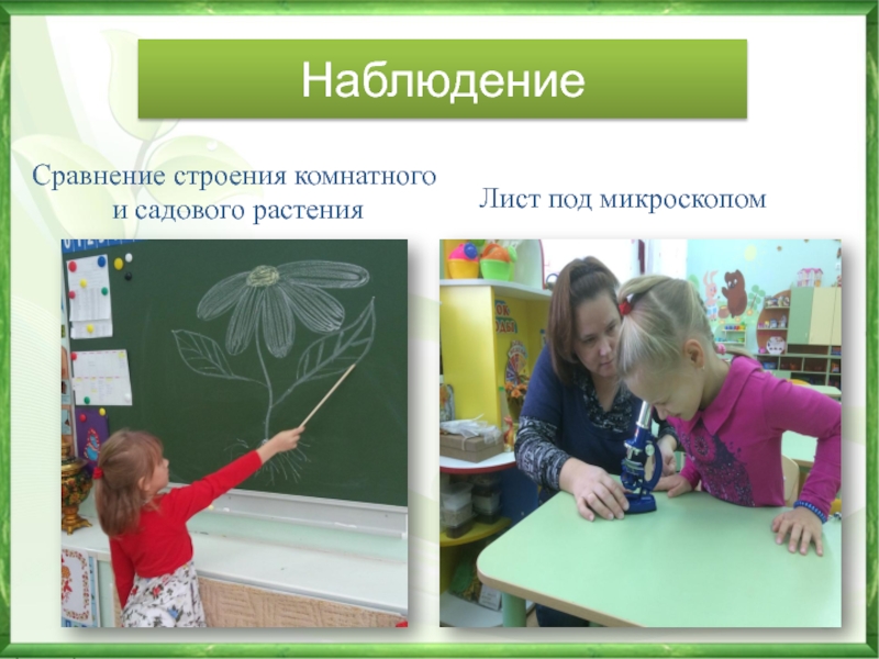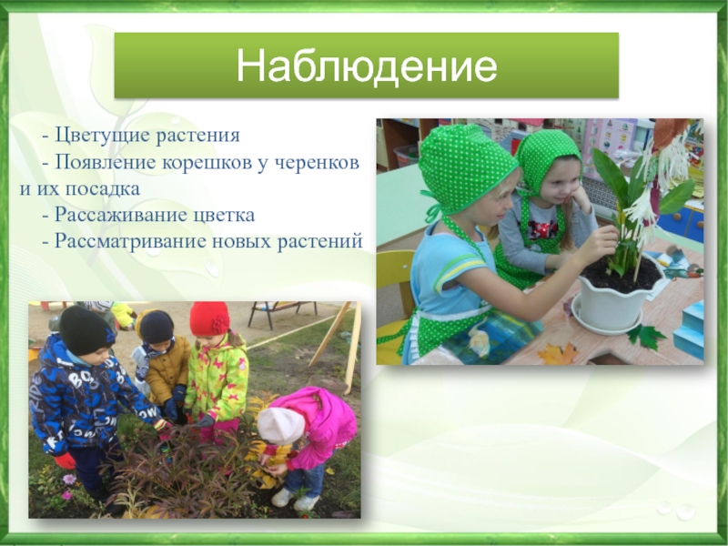 наблюдения, исследования природных объектов; обогащать словарный запас детей и их знания о растениях
