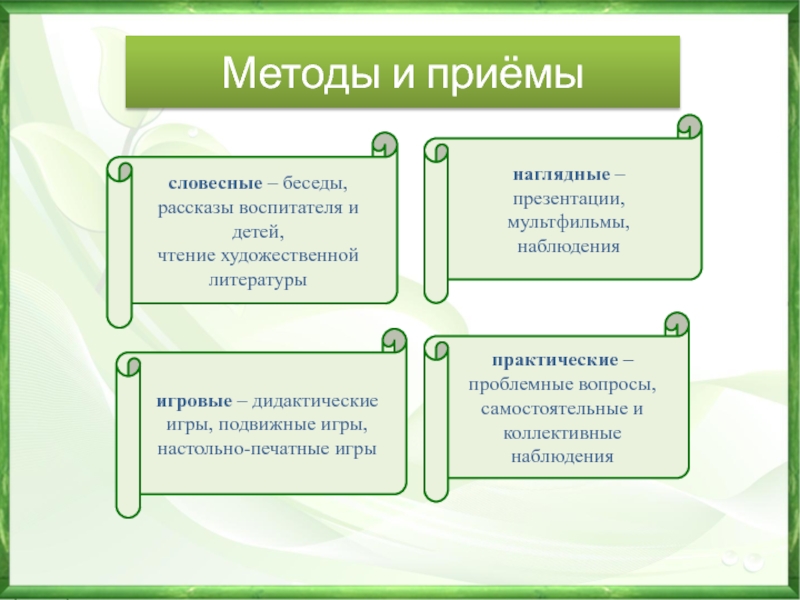 практические – проблемные вопросы, самостоятельные и коллективные наблюдения