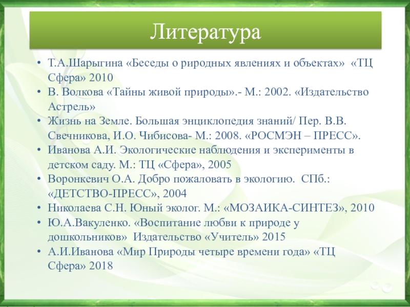 Воронкевич О.А. Добро пожаловать в экологию. СПб.: «ДЕТСТВО-ПРЕСС», 2004