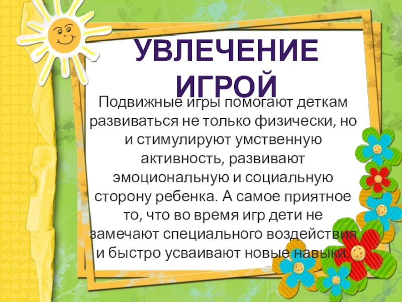 стимулируют умственную активность, развивают эмоциональную и социальную сторону ребенка. А самое приятное то, что во время игр дети не замечают специального воздействия и быстро усваивают новые навыки.