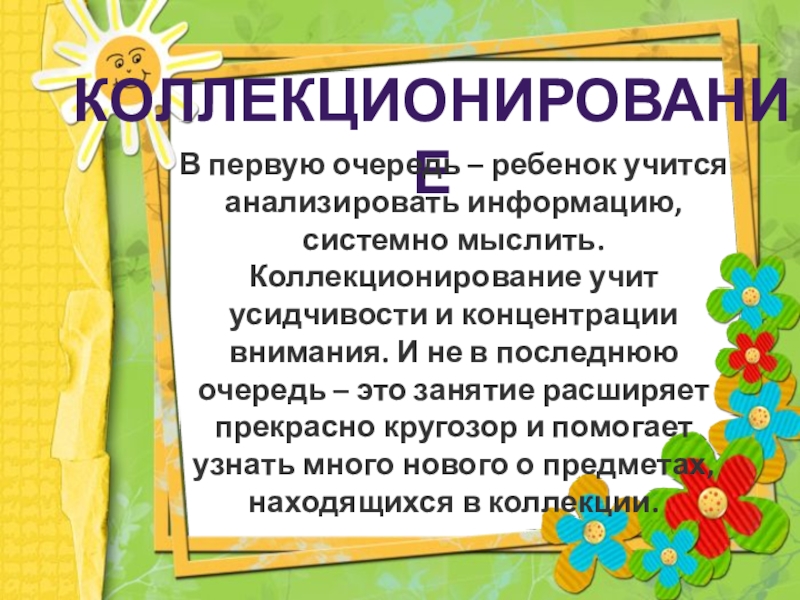 В первую очередь – ребенок учится анализировать информацию, системно мыслить. Коллекционирование