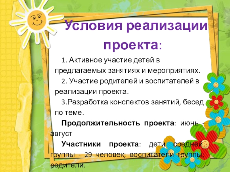 Слайд 5Условия реализации проекта: