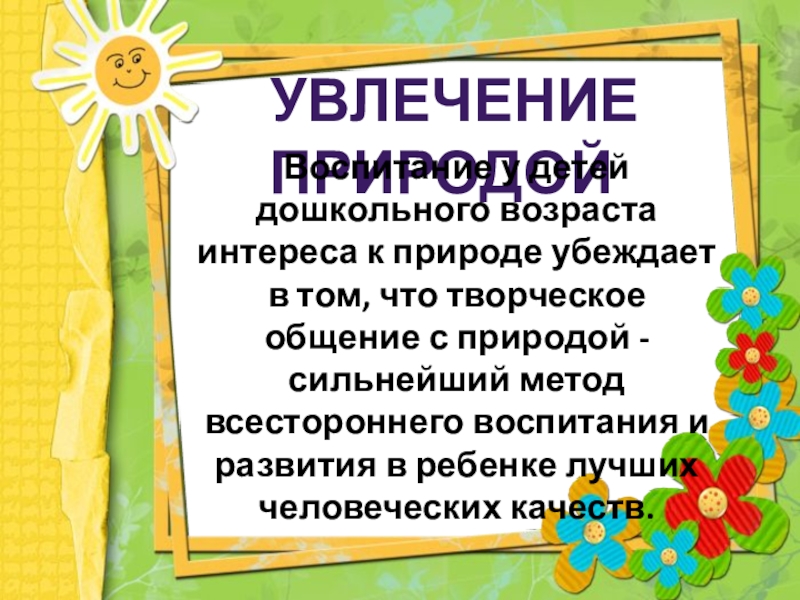 убеждает в том, что творческое общение с природой - сильнейший метод всестороннего воспитания и развития в ребенке лучших человеческих качеств.
