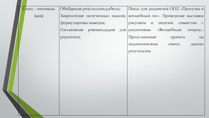 3 этап (Итоговый)- Обобщение результатов работы, закрепление полученных знаний, формулировка выводов, составление рекомендаций для родителей.