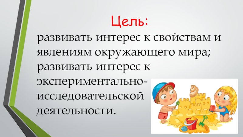 Цель: развивать интерес к свойствам и явлениям окружающего мира; развивать интерес к экспериментально-исследовательской деятельности.