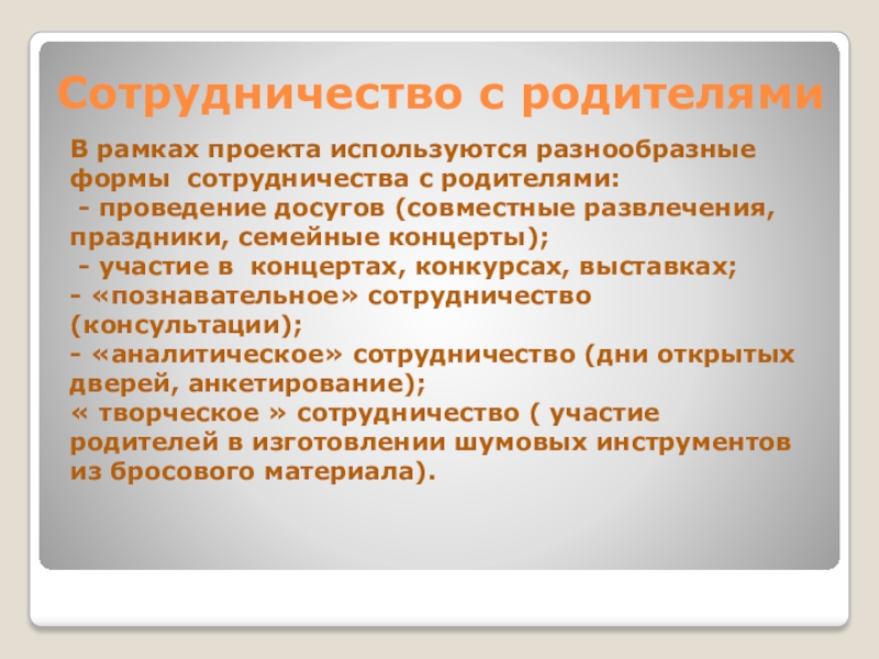 В рамках проекта используются разнообразные формы сотрудничества с родителями: