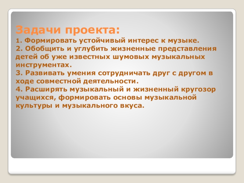 1. Формировать устойчивый интерес к музыке.
