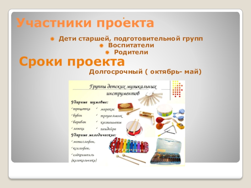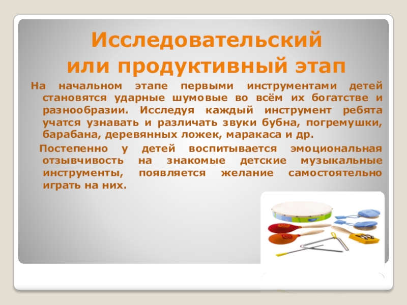 На начальном этапе первыми инструментами детей становятся ударные
