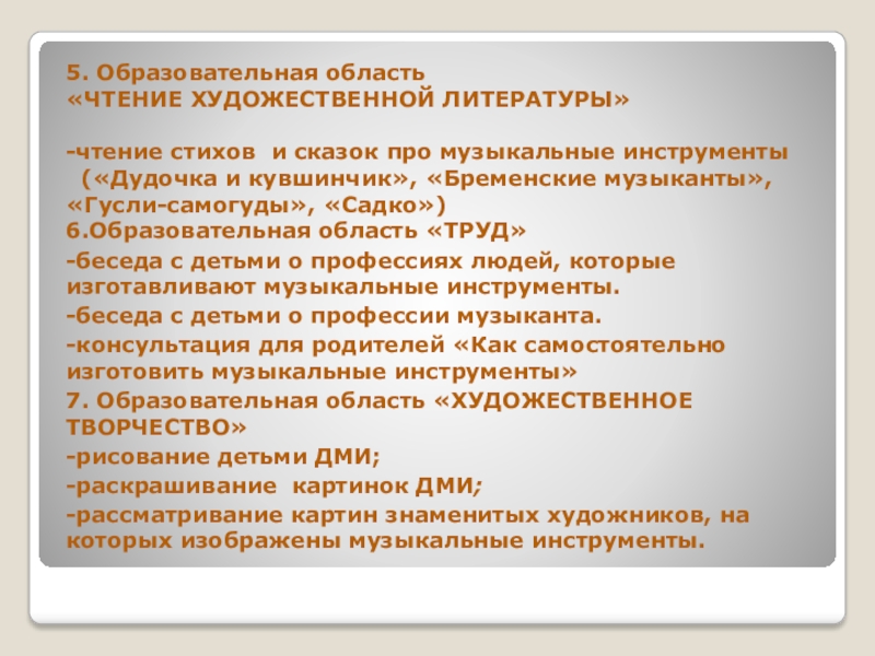 -придумывание детьми загадок и стихов про музыкальные инструменты.