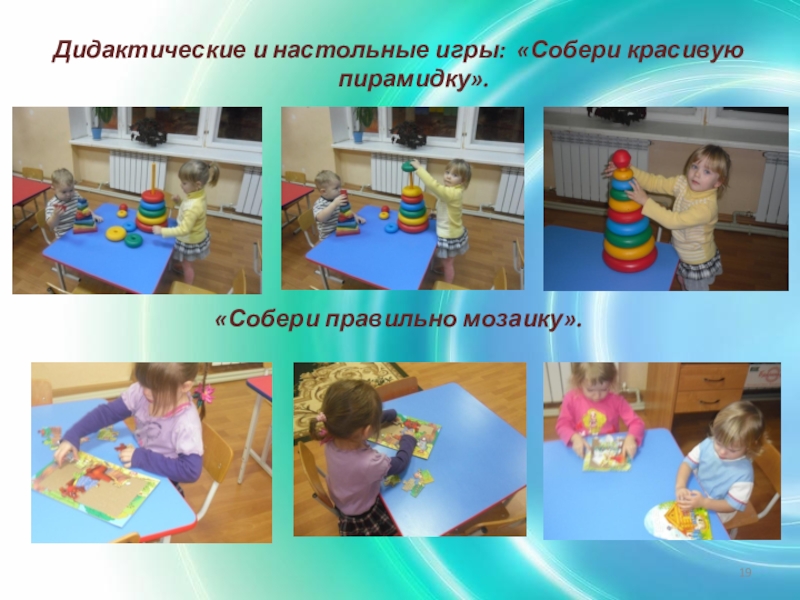 Слайд 19Дидактические и настольные игры: «Собери красивую пирамидку».
