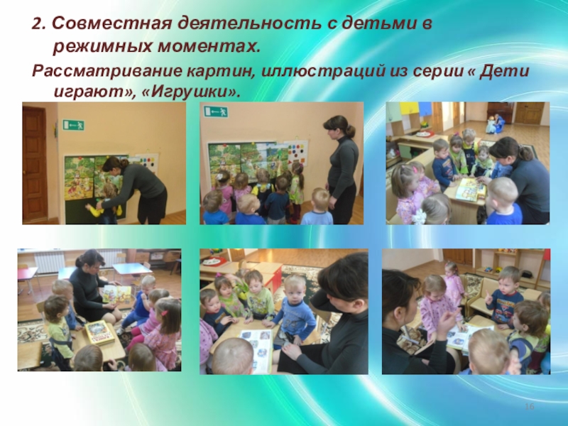 Слайд 162. Совместная деятельность с детьми в режимных моментах.