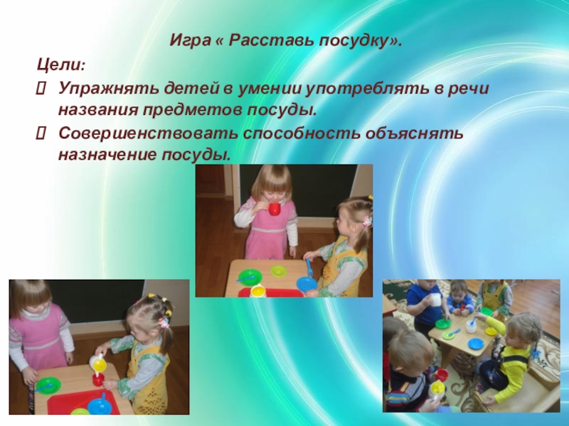 Слайд 8Игра « Расставь посудку».