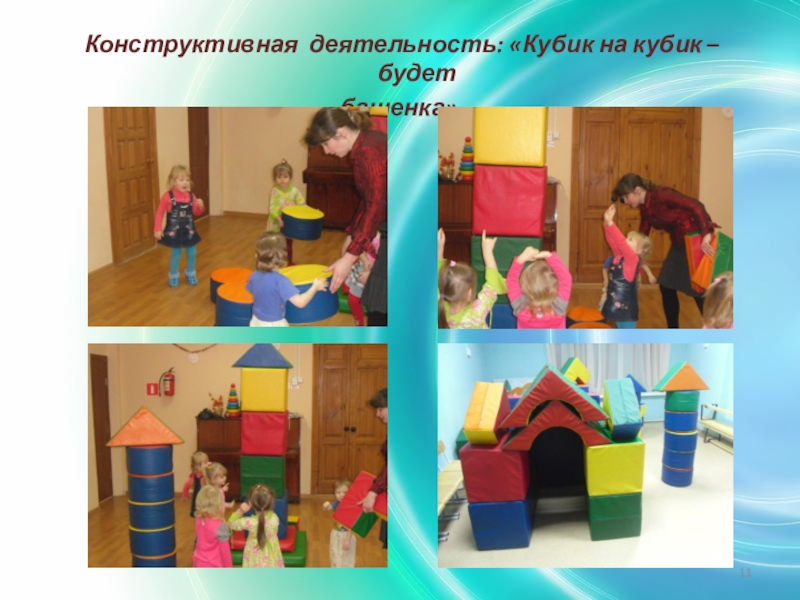 Слайд 11Конструктивная деятельность: «Кубик на кубик – будет