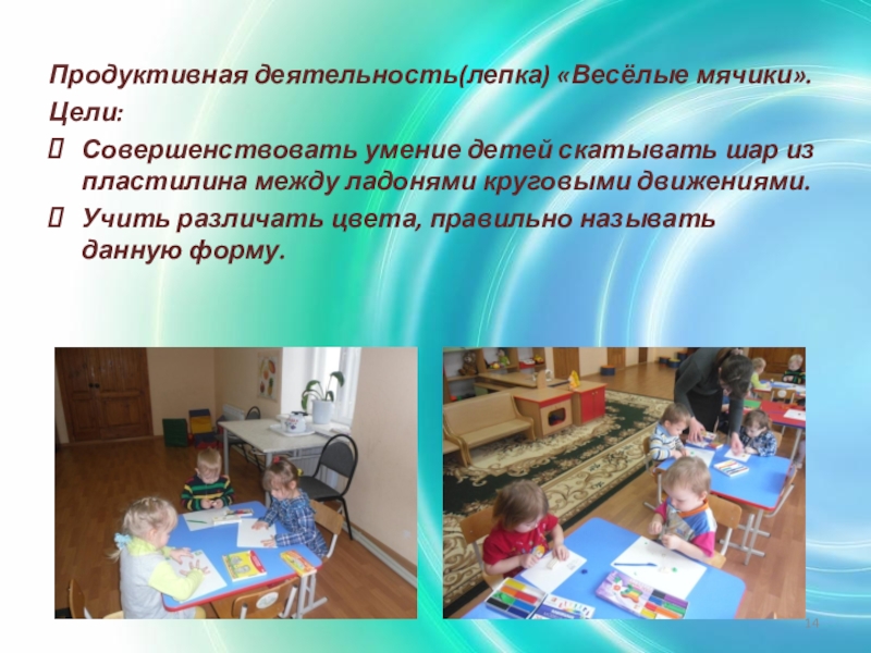 Слайд 14Продуктивная деятельность(лепка) «Весёлые мячики».
