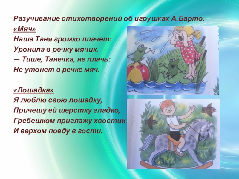 Слайд 24Разучивание стихотворений об игрушках А.Барто: