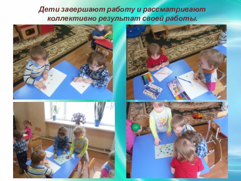 Слайд 15Дети завершают работу и рассматривают коллективно результат своей работы.