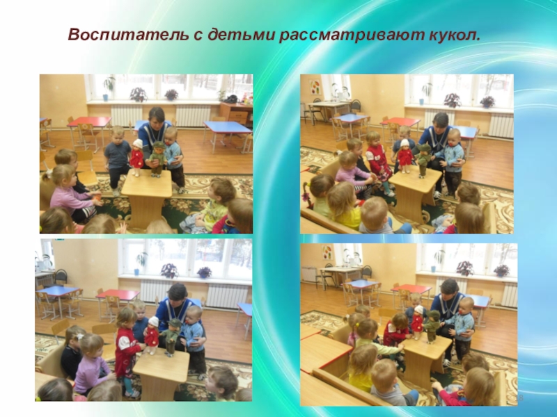 Воспитатель с детьми рассматривают кукол.