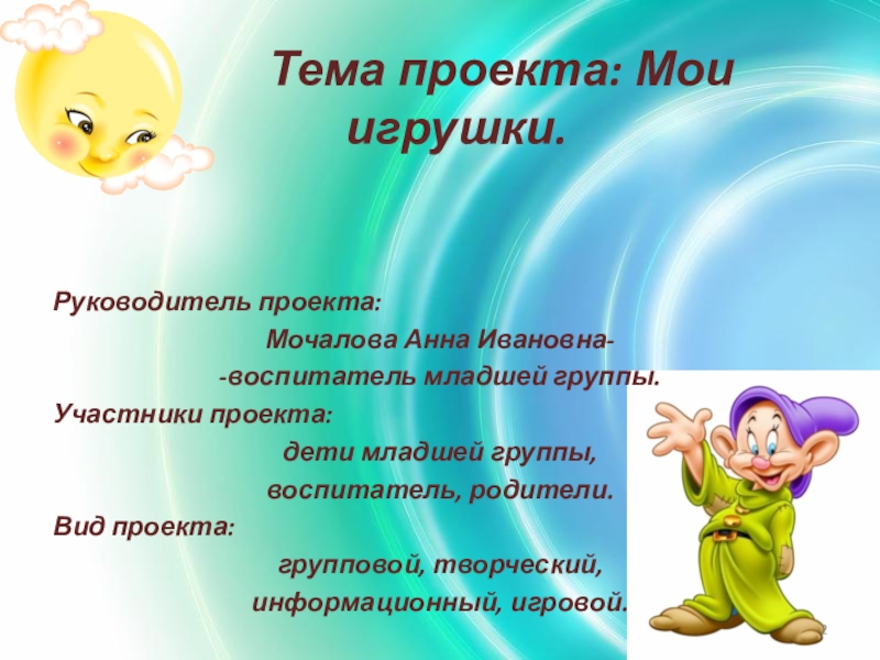 Слайд 2 Тема проекта: Мои игрушки.