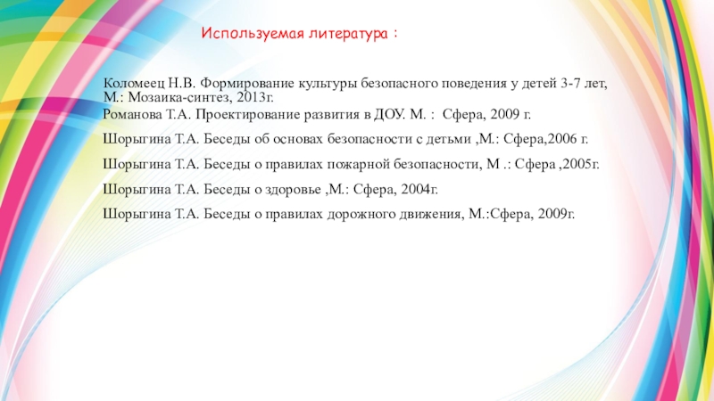 Шорыгина Т.А. Беседы о правилах пожарной безопасности, М .: Сфера ,2005г.