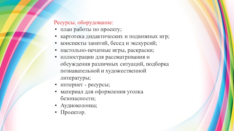 иллюстрации для рассматривания и обсуждения различных ситуаций, подборка познавательной и художественной литературы;