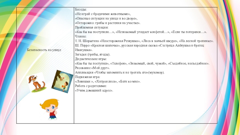 разработка плана деятельности по обучению детей основам собственной безопасности;