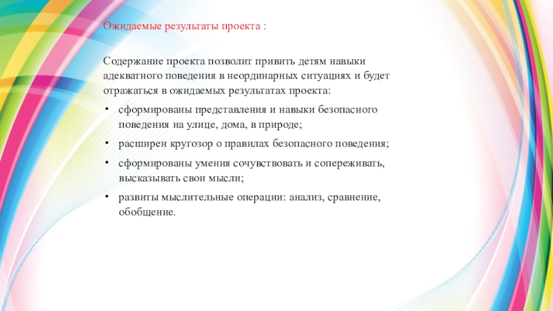 Содержание проекта позволит привить детям навыки адекватного поведения